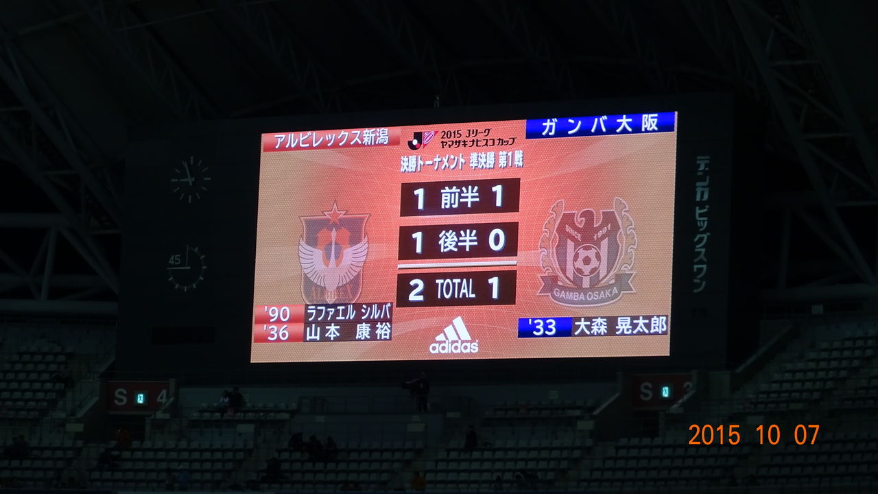 しかしその直後の前半35分に新潟はMF康裕がゴールを決めて前半は1対1で折り返した。