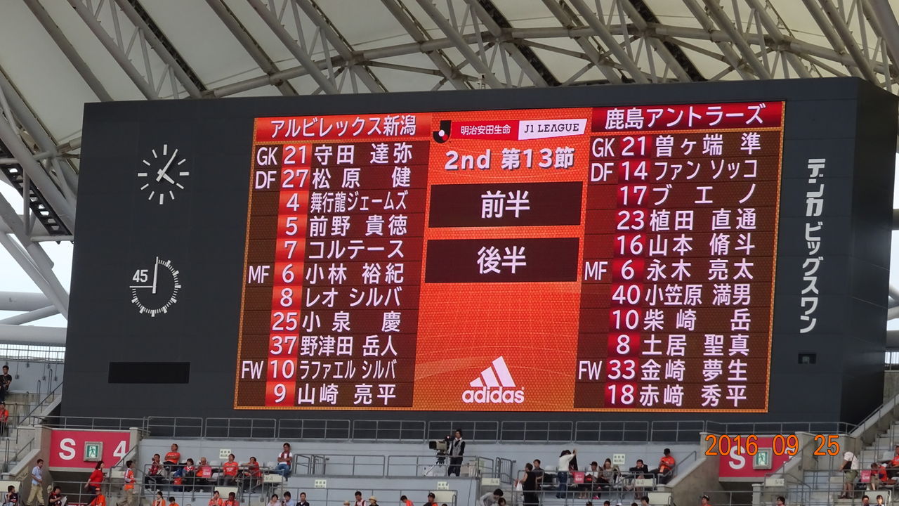 アルビレックス新潟はホームデンカビックスワンで年間3位鹿島アントラーズと対戦し、