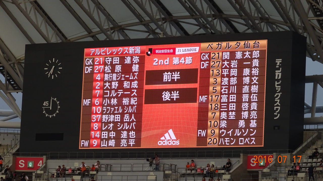 アルビレックス新潟はホームデンカビックスワンで年間13位べガルダ仙台と対戦し、