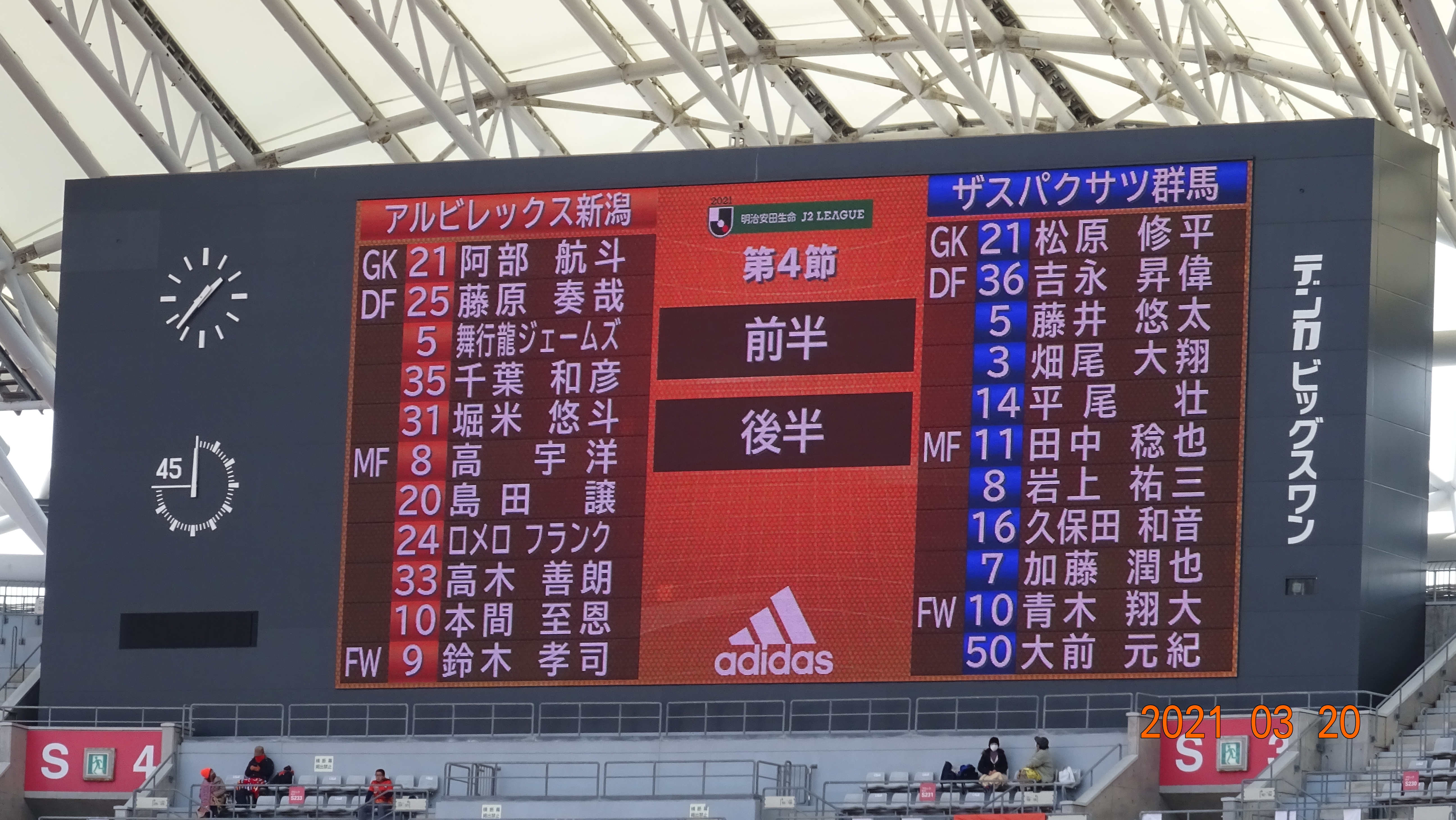 前半は完全に新潟ペースで2点リードで折り返した。