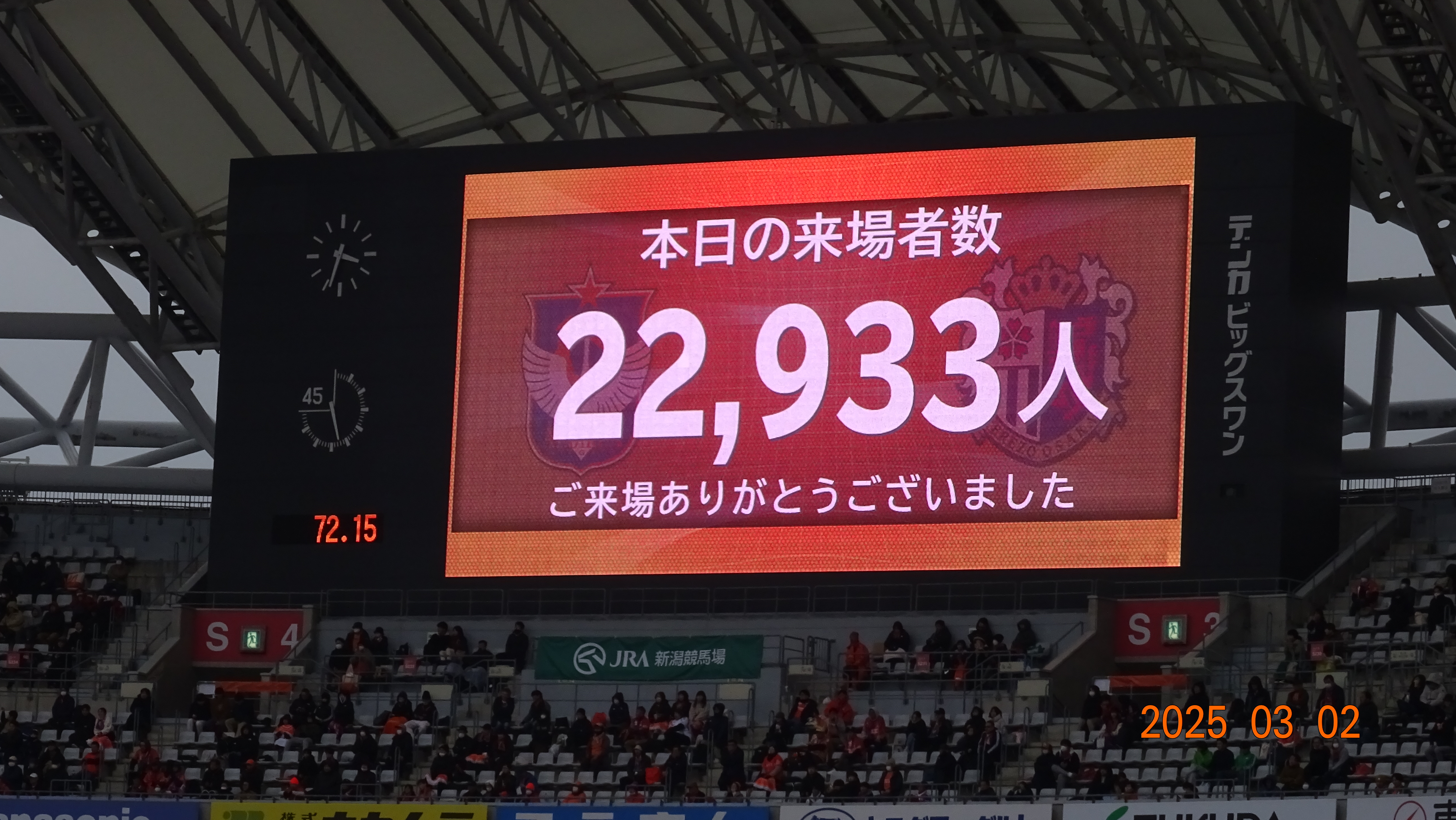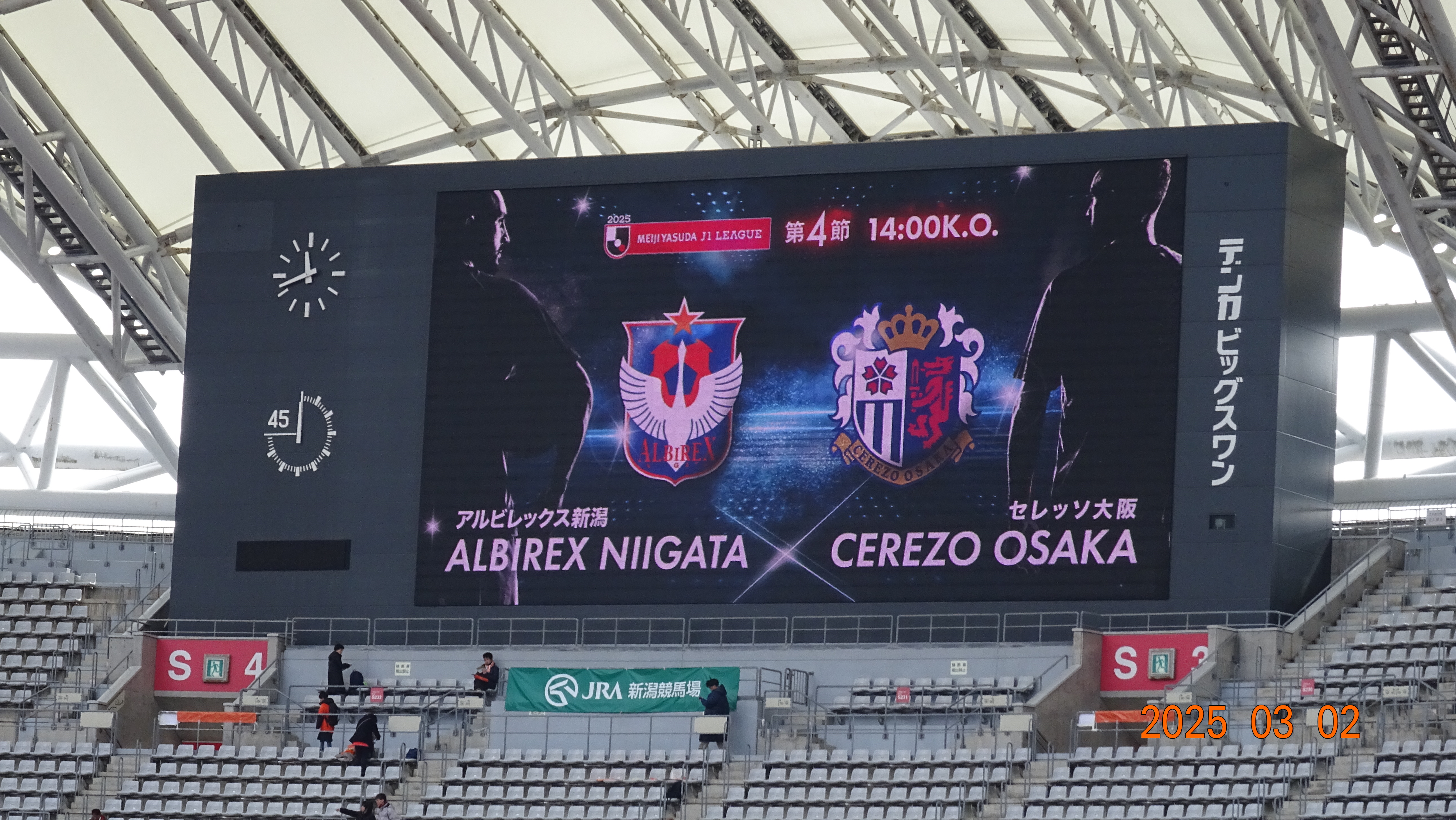 2日J1リーグ25第4節が行われ、アルビレックス新潟はホームデンカビックスワンでセレッソ大阪と対戦し2対2で新潟は前半17分にFW矢村健のゴールで先制しその後追いつかれたが、後半17分にMF長谷川元希のゴールで勝ち越したが後半アディショナルタイムに追いつかれてドローとなり開幕4試合勝ちなしとなった。