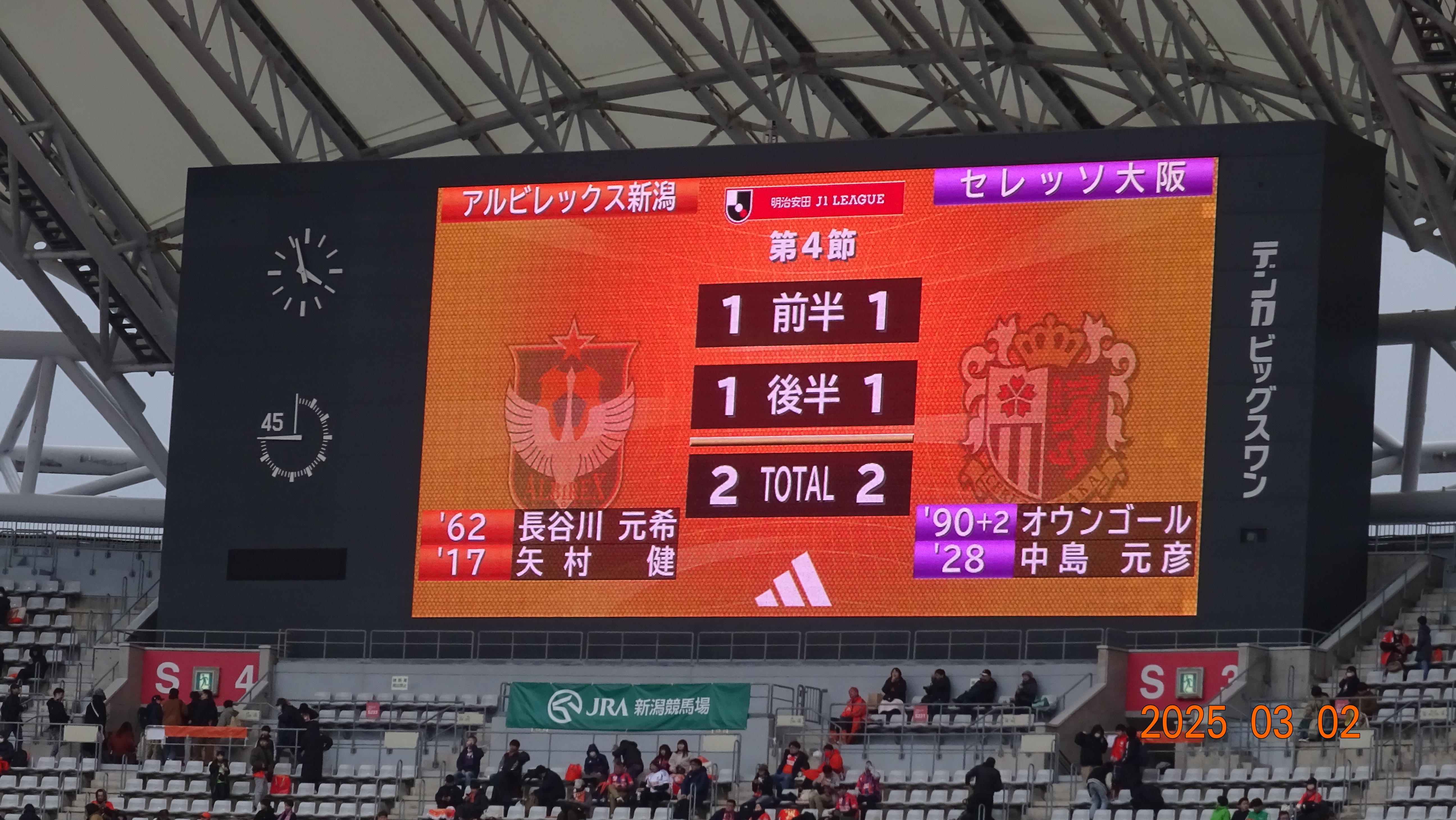 🏆明治安田J1リーグ 第4節#アルビレックス新潟 2-2 #セレッソ大阪#albirex pic.twitter.com/WM01qlnNha